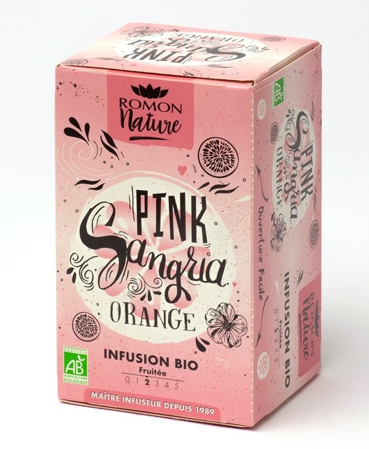 Pomme acide bio, Hibiscus bio, Cynorrhodon bio, Pomme bio, Mûre bio, Arôme naturel Sangria, Cannelle bio, Écorce d’Orange bio